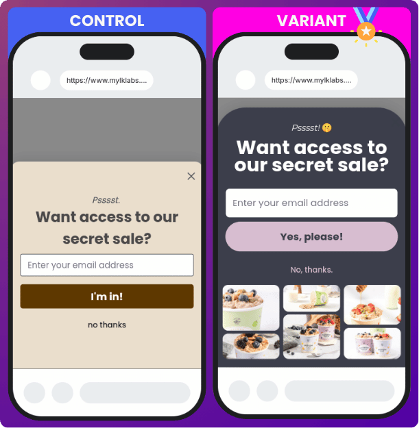 Amaaaazing product. Solid brand. But like most DTC sites, the original opt-in was polite. Light background. Soft tone. Easy to ignore.